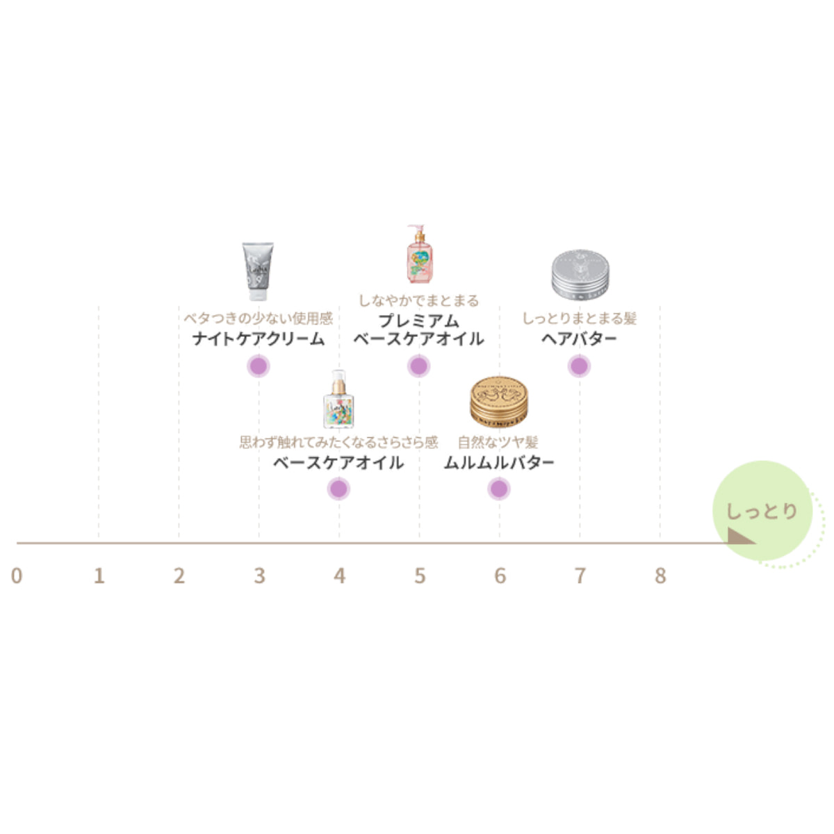 朝・晩・日中も髪にうるおいとまとまりを与えます。髪をやさしくいたわりながら、素髪を活かした自然な仕上がりに導きます。