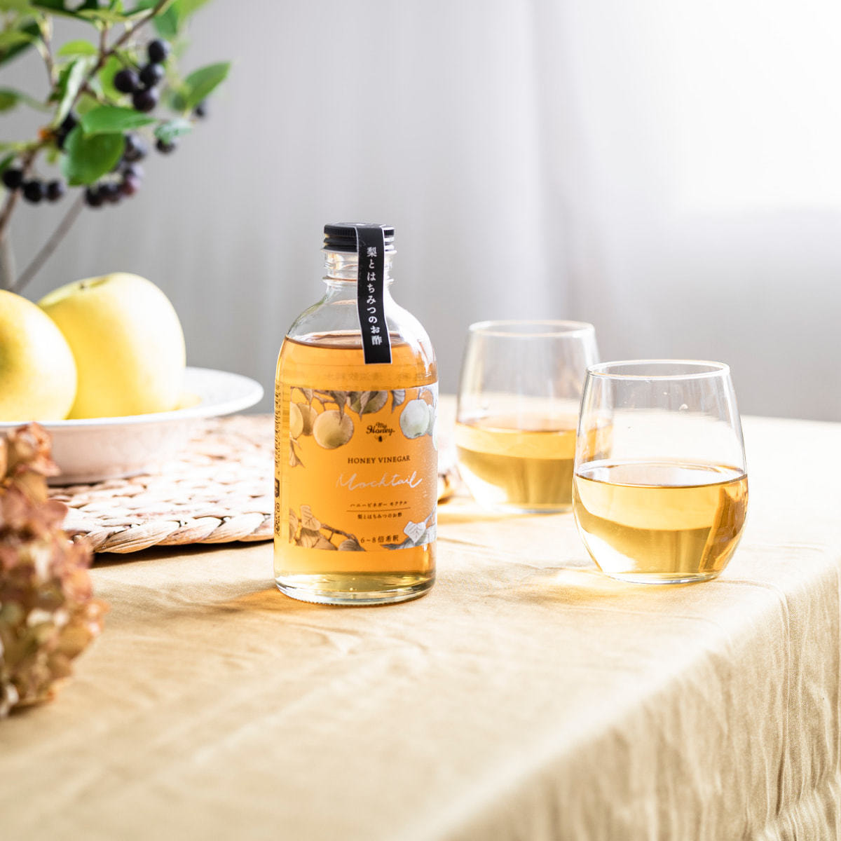 「梨100%」でじっくりと時間をかけて本格醸造した二十世紀梨酢に希少な「生はちみつ」の栄養と美味しさをプラス。
