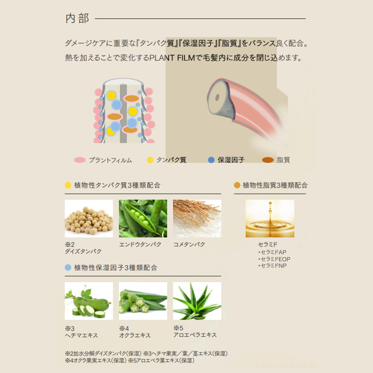 PLANT FILM(※1)は髪の内部・外部を同時にダメージ補修。